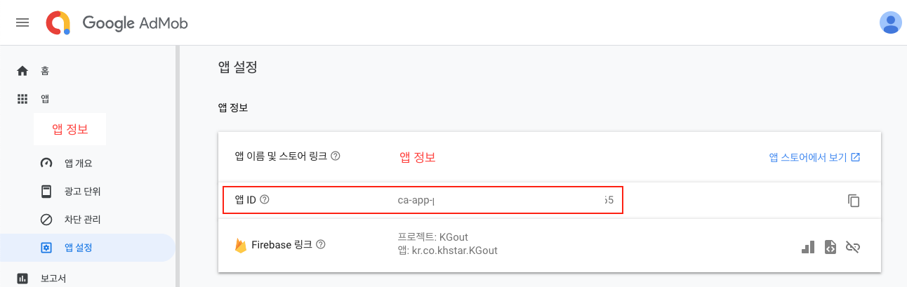 앱 ID는 AdMob에서 확인하시면 됩니다.